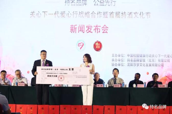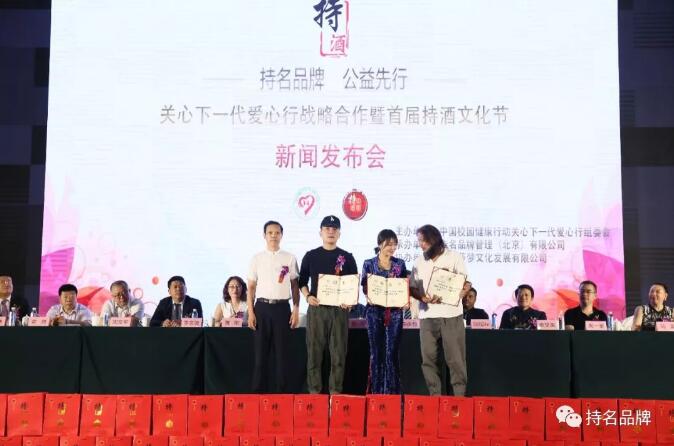 2018年7月19日,持名品牌管理(北京)有限公司与关心下一代爱心行战略合作暨首届持酒文化节新闻发布会在京成功举办,这是“中国持酒”作为一个勇担社会责任的企业,在公益事业上的又一个里程碑。